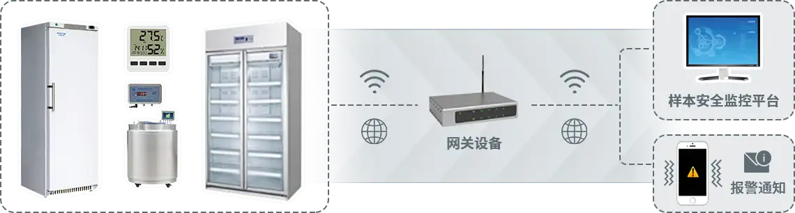 系统自带【样本库安全云平台】,可与容器温度监控探头、环境温湿度监控探头进行对接,统一保管库内的监控数据。平台具备完善的远程报警、移动端管理、历史温度追溯功能。