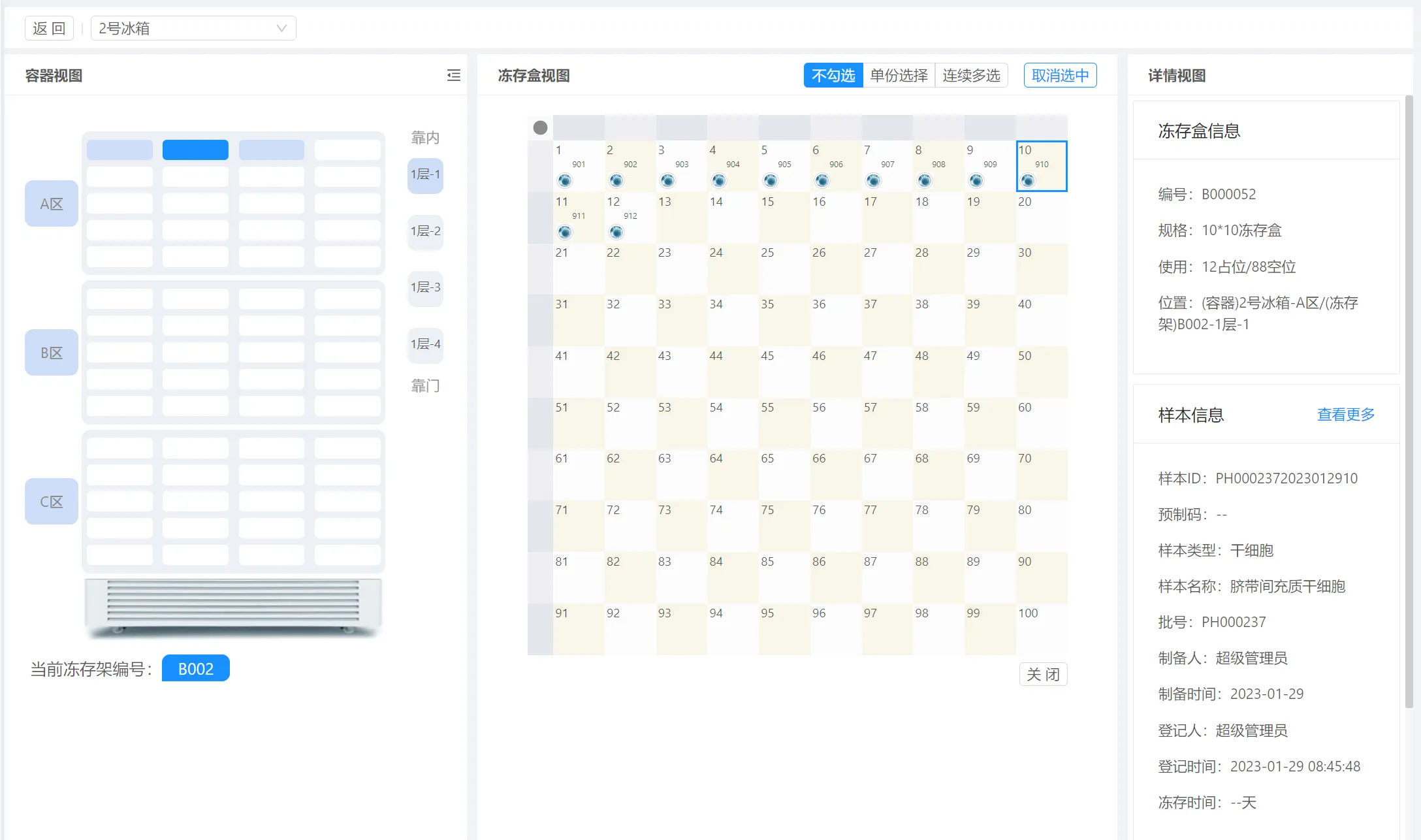 样本入库是库管人员的高频操作,过程中要求速度快、放对位置、记对位置。同样,我们也是针对这几个指标来进行系统的功能设计。
